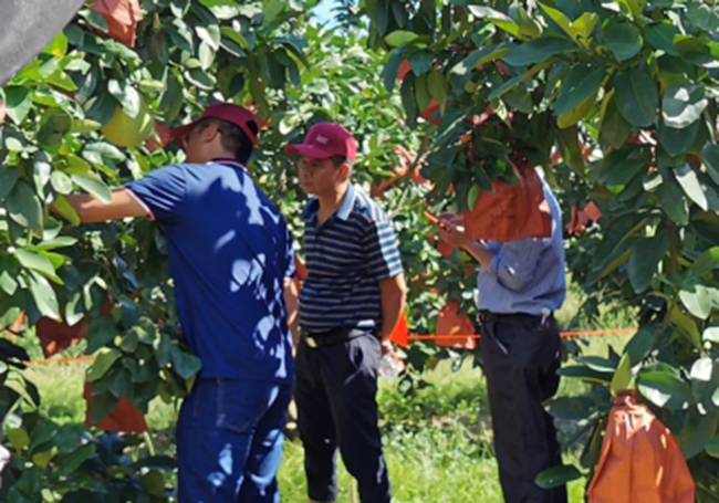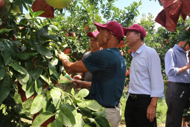 我们先走进蜜柚果园,实地观察用药的效果情况,农户们赞不绝口。