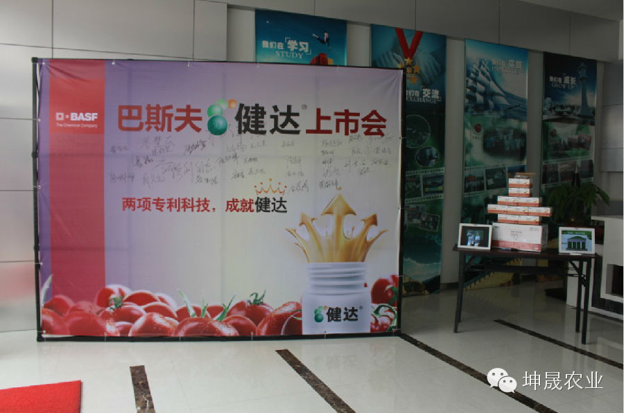 2014年4月24日,坤晟农业携手巴斯夫在漳州召开健达产品上市会。参会的主要成员有坤晟农业总经理史金生、销售部经理廖勋平、技术部经理蔡炎彪;巴斯夫(中国)有限公司华南大区经理邵杰锋、福建销售经理李维福、福建销售代表周江斌以及众多的下游批发零售客户。