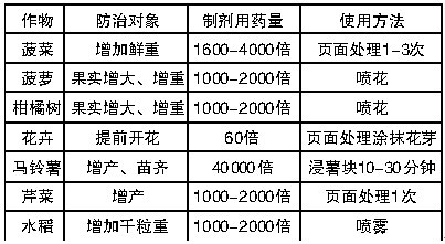 生产厂商:上海悦联 有效成份:4%赤霉素 剂型:乳油 规格:100克×100瓶 登记对象及使用方法: