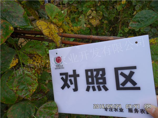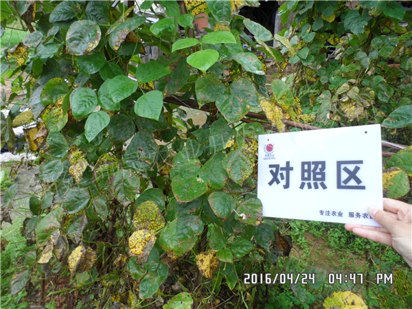 示范区(喷药后16天观察):新生叶片及生长点生长旺盛,无发病现象…可显著延长采收期