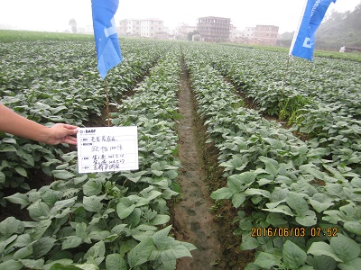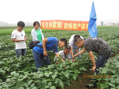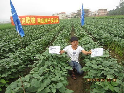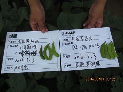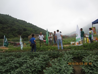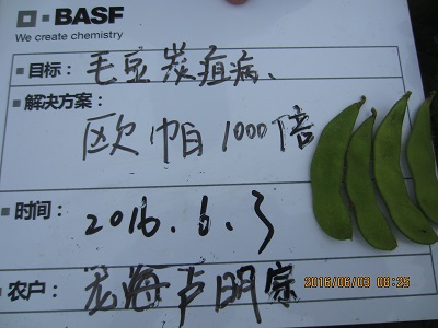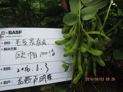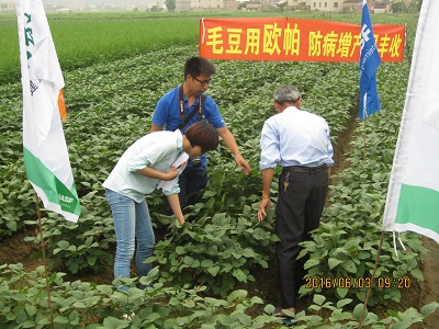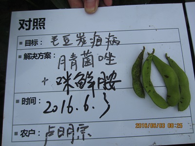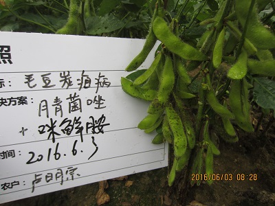 现场观摩会时间:2016.06.03 地点:龙海海澄 示范区使用药剂:欧帕1000倍液 喷施时间:毛豆顶荚谢花后第一次喷施2016.05.16,第二次2016.05.27