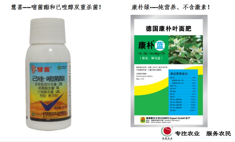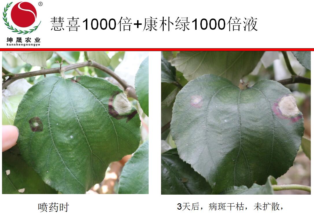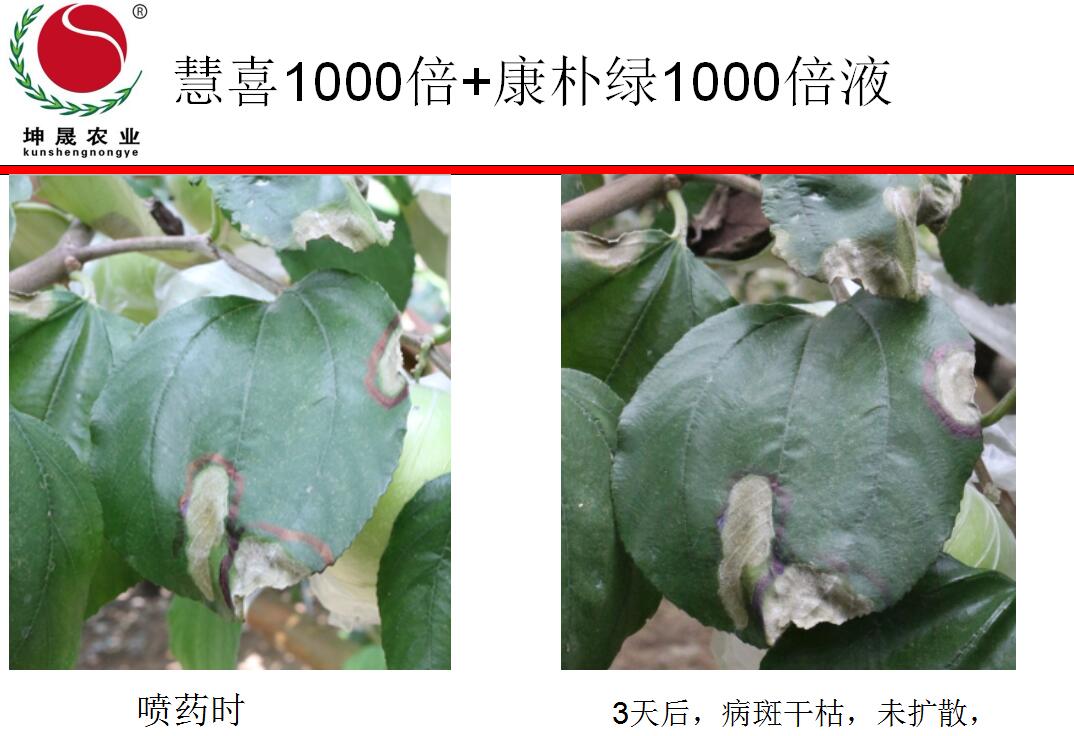 发生时建议用药:慧喜1000倍液+康朴绿1000倍液
