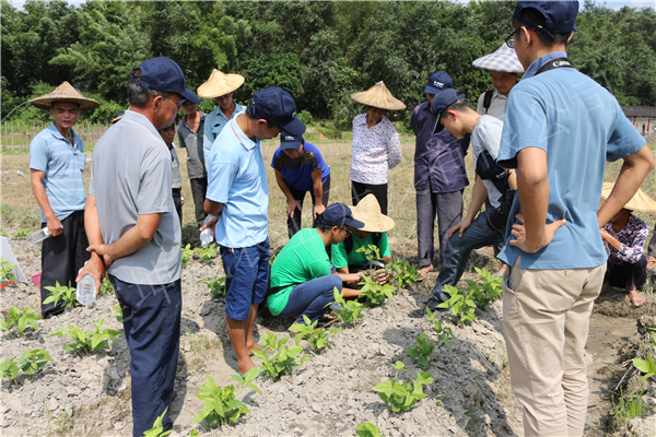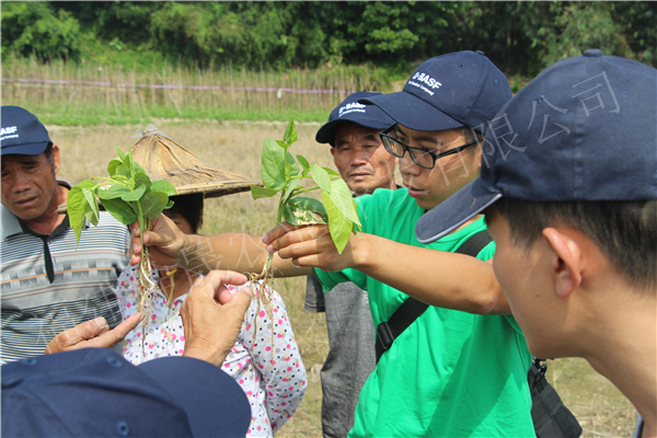 观摩会现场:农户与我们一起现场感受鑫尊对于豆类根部处理的优势