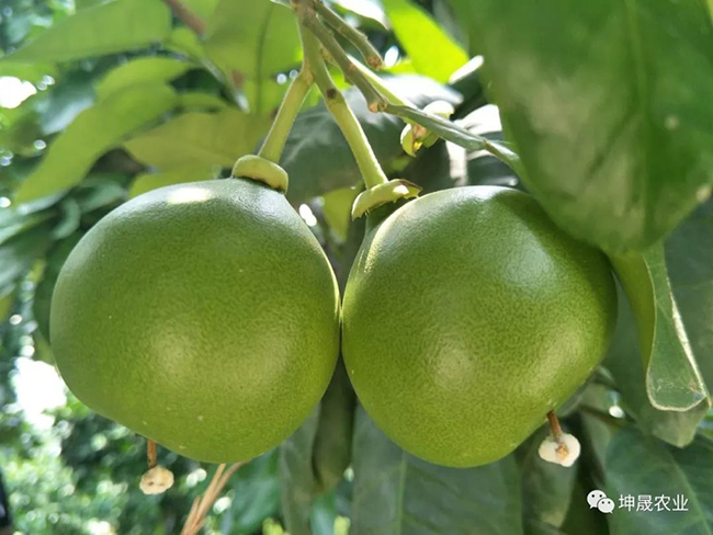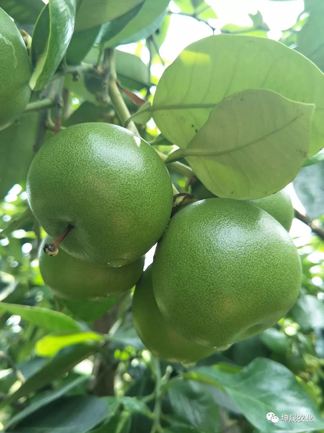 蜜柚从抽春梢、长花蕾、开花、幼果生长都消耗大量营养,“五一”前后,第一次生理落果结束,进入第二次生理落果,此时及时追施肥料,可促进幼果膨大,减少二次生理落果和畸形果,因此这次施肥叫定果稳果肥。这次施肥应占全年总施肥量的30-40%,如株产200斤树,应施速效高氮高钾诺泰克3-4斤。