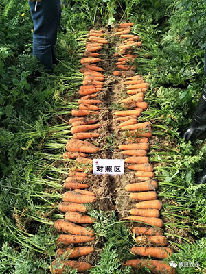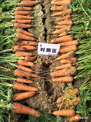 对照区胡萝卜大小不均匀,参差不齐