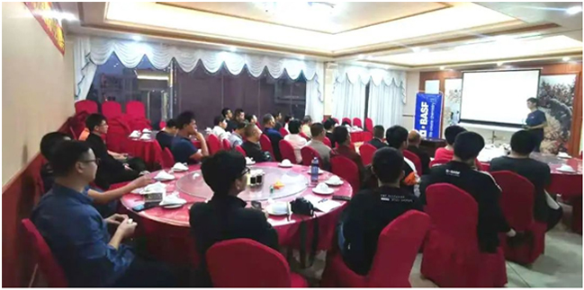 会议第二个议程我们一起来到室内产品讲解部分,由巴斯夫片区主管廖慧东为大家做主题分享。会议针从“格力高”全新作用机理、无交互抗性、耐雨水冲刷、杀菌谱更广等方面,做更系统、详细的分享。