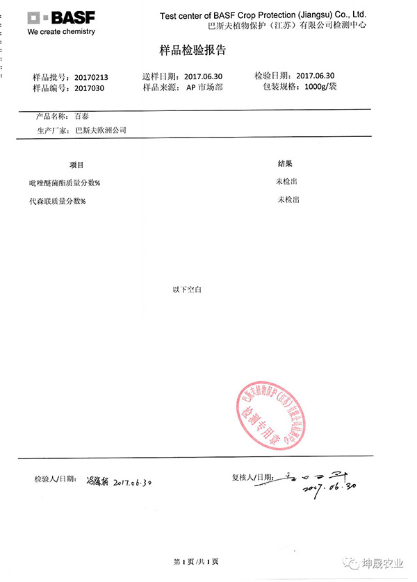 其次,经过专业检测,该产品吡唑醚菌酯及代森联的含量均为零!希望广大果农能够提高警惕。