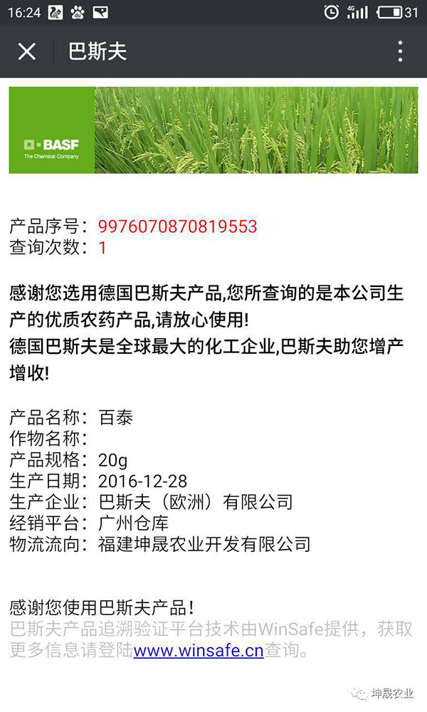 而真正的百泰,用微信扫一扫二维码即可出现详细的产品信息以及物流信息。