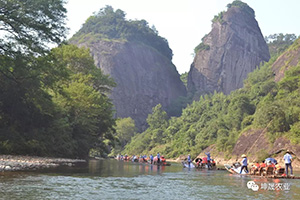 第二天一早大家就整装待发开始激动人心的项目:九曲溪漂流。为了这次活动,大家在6点半就集合完毕,集体用完早餐之后就赶往九曲溪的码头,伴随着初升的暖阳开始我们的漂流。期间如果没有大家强烈的团队意识、合理的分工合作,就不可能在短短的时间内超过众多旅行团抓住一天中最好的时机去欣赏美景。