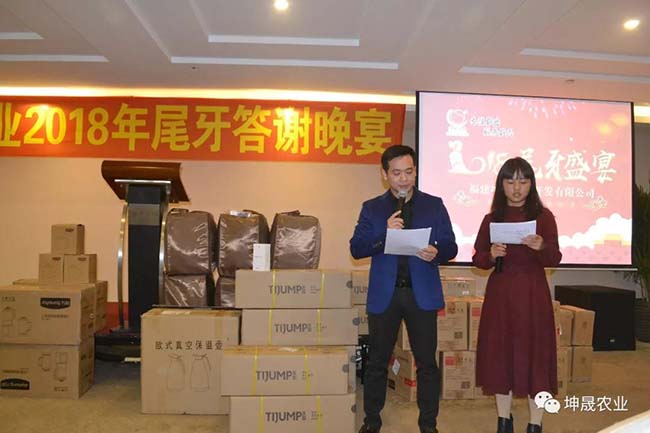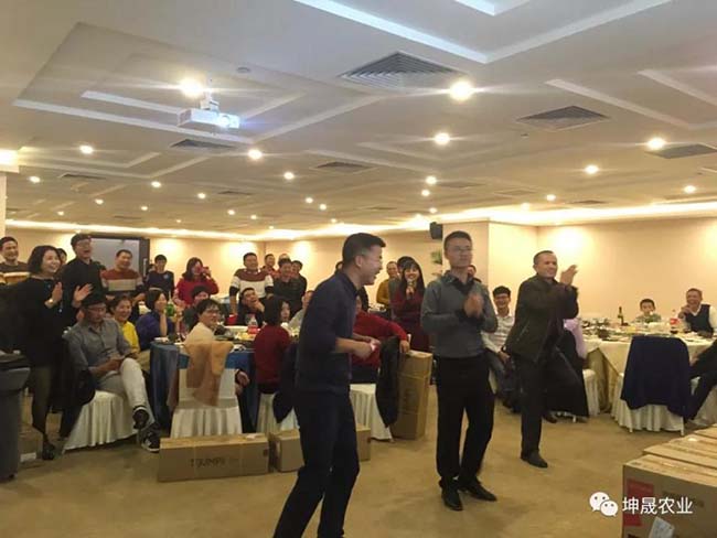 坤晟农业董事长黄总的致词后,拉开今年尾牙晚宴的序幕