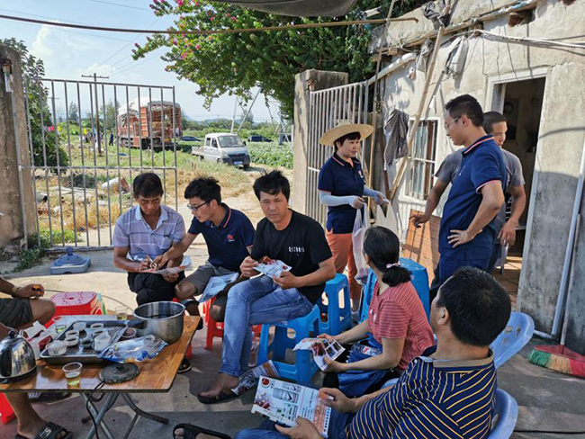 田间带领着农户们进行参观,查看地瓜的长势、密集度及品相,农户们大大赞赏。