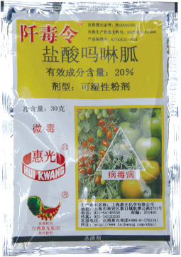 生产厂商:上海惠光 有效成份:20%盐酸吗啉胍 剂型:可湿性粉剂 规格:30克×250包 登记对象及使用方法: