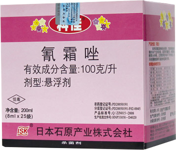 生产厂商:日本石原产业株式会社 有效成分含量:100克/升氰霜唑 剂型:悬浮剂 规格:8mlx25包x10盒 登记对象及使用方法:
