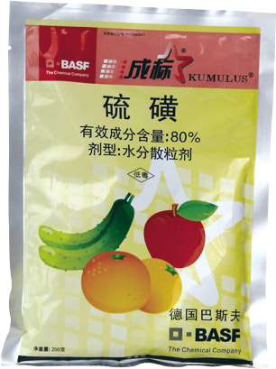 生产厂商:德国巴斯夫 有效成分含量:80%硫磺 剂型:水分散粒剂 规格:100克×100包;200克×50包;500克×20包 登记对象及使用方法: