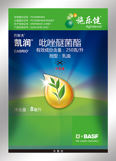 生产厂商:德国巴斯夫 有效成分含量:25%吡唑醚菌酯 剂型:乳油 规格:8毫升×50包×10盒;100毫升×50瓶; 500毫升×20瓶 登记对象及使用方法: