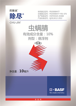 生产厂商:德国巴斯夫 有效成分含量:100克/升虫螨腈 剂型:悬浮剂 规格:8克×50包×10盒;10毫升×50包×6盒; 100毫升×50瓶;500毫升×20瓶 登记对象及使用方法: