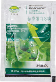 生产厂商:黑龙江大地丰 有效成份:香菇多糖 剂型:0.5%水剂 规格:25克×50包×6盒 100ml×40瓶 登记对象及使用方法: